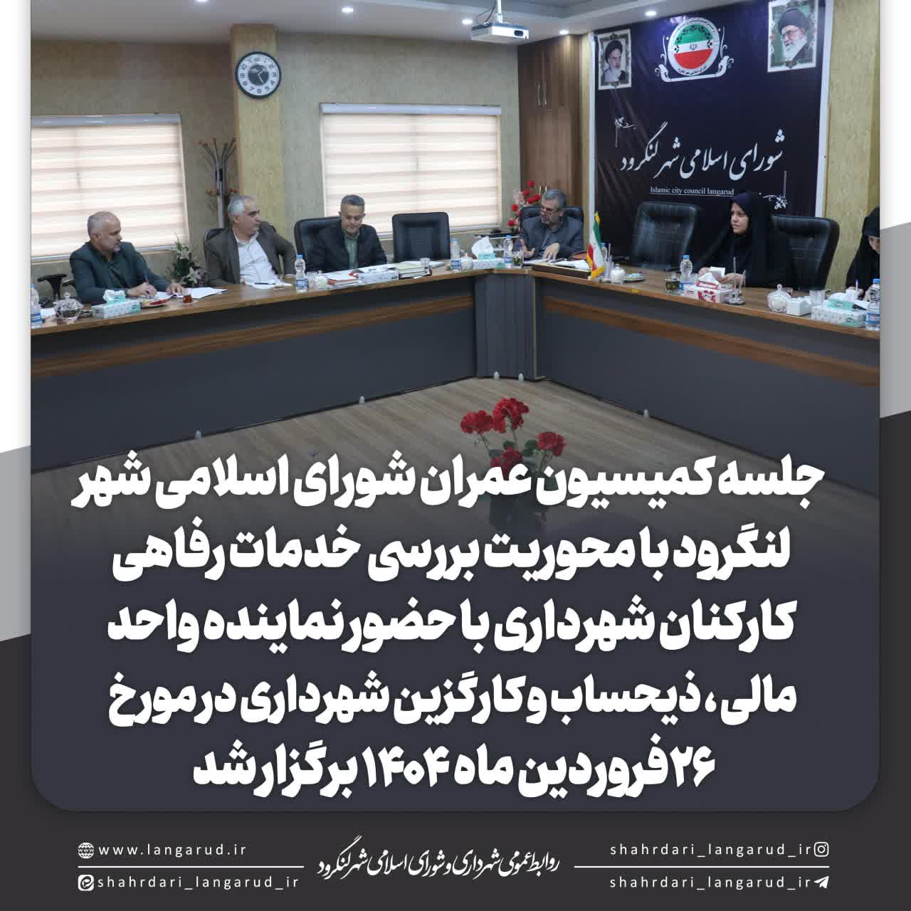 جلسه کمیسیون عمران شورای اسلامی شهر لنگرود با محوریت بررسی خدمات رفاهی کارکنان شهرداری با حضور نماینده واحد مالی ، ذیحساب و کارگزین شهرداری در مورخ ۲۶ فروردین ماه ۱۴۰۴ برگزار شد.