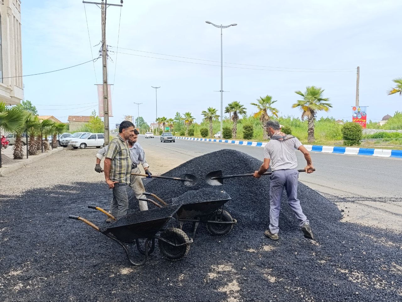 عملیات اجرای آسفالت حاشیه میدان تپه به همت و تلاش مدیریت شهری شهرداری چاف و چمخاله