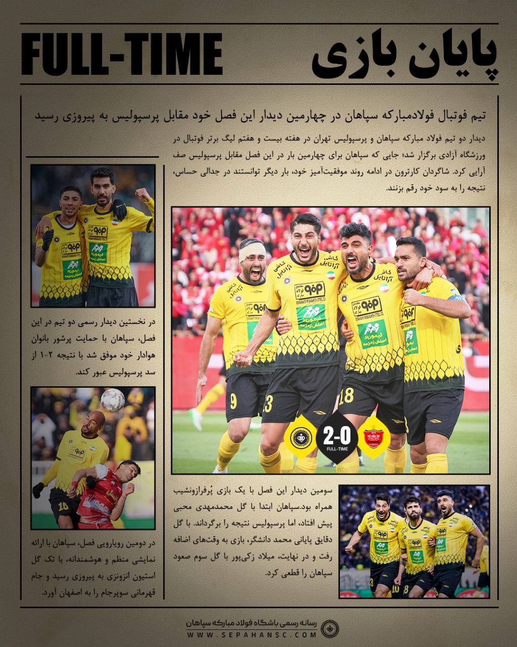 نکته جالب اینکه سپاهان تبدیل به اولین تیم در فصل جاری رقابت های لیگ برتر شد که در هر دو بازی رفت و برگشت برابر پرسپولیس با پیروزی رسید.