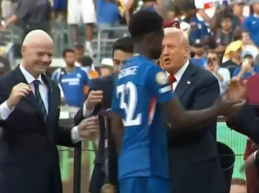 روزنامه دیلی میل نوشت: تایریک جورج بازیکن چلسی، به جای دست دادن با ترامپ، ترجیح داد با “تاد بوچلی” (Todd Boehly)، یکی از مالکان تیم چلسی دست بدهد و منتظر رئیس جمهور آمریکا نماند. تایریک جورج، فوتبالیست انگلیسی است که اکنون ۱۹ سال دارد.