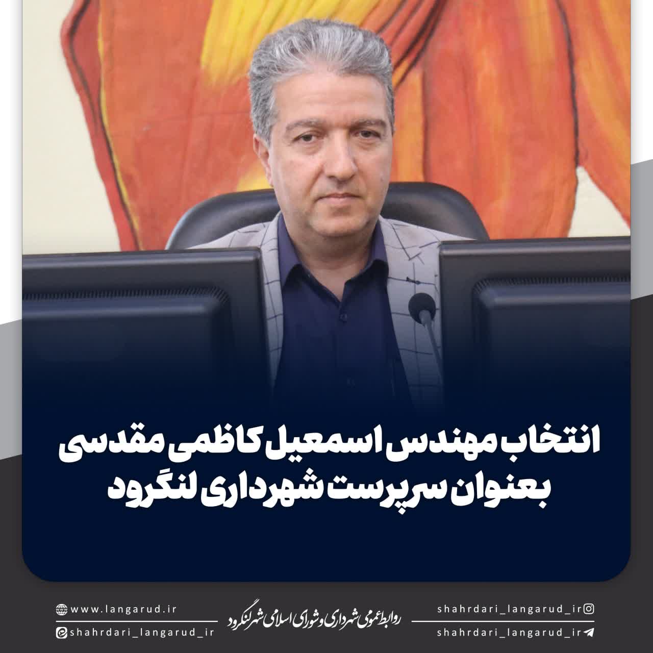 به گزارش روابط عمومی شهرداری و شورای اسلامی شهر لنگرود: در پی جلسه اخیر شورای اسلامی شهر لنگرود، مهندس اسمعیل کاظمی مقدسی، معاونت عمرانی و شهرسازی شهرداری لنگرود، به عنوان سرپرست جدید این شهرداری معرفی شد. این انتخاب به منظور ادامه روند توسعه شهری و ارتقای خدمات به شهروندان صورت گرفت.