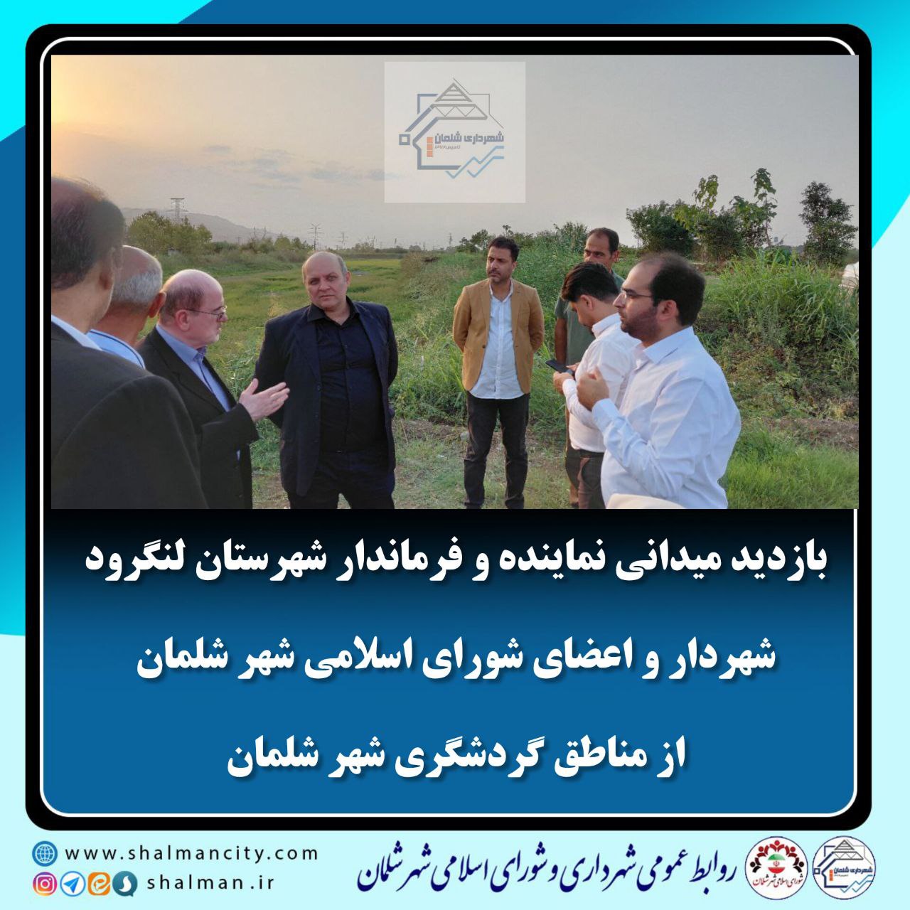 ⭕️ بازدید میدانی مهندس مهرداد لاهوتی نماینده لنگرود در مجلس شورای اسلامی، دکتر یوسف گلشن فرماندار این شهرستان، دکتر ایمان محمّدپور نیک بین شهردار و اعضای شورای اسلامی شهر شلمان از طرح گردشگری در حال احداث پارک آبی ملّت(استخر بالامحله شهر شلمان) و طرح گردشگری مذهبی بقعه متبرکه شاه اولیاء این شهر