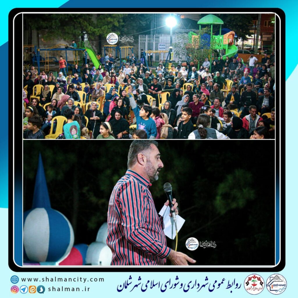 🔺 این جشن به همّت شهرداری و شورای اسلامی شهر شلمان پنجشنبه ها ساعت ۲۰، از ۲۷ شهریورماه به مدت ۵ هفته در محل پارک کودک شهر شلمان برگزار خواهد شد.