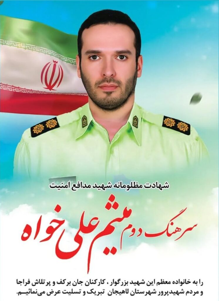 با نهایت تأثر و تأسف، خبر شهادت سرهنگ دوم میثم علیخواه، از نیروهای غیور، مخلص و فداکار عرصه امنیت و آرامش کشور، موجب اندوه عمیق و تألم فراوان گردید.