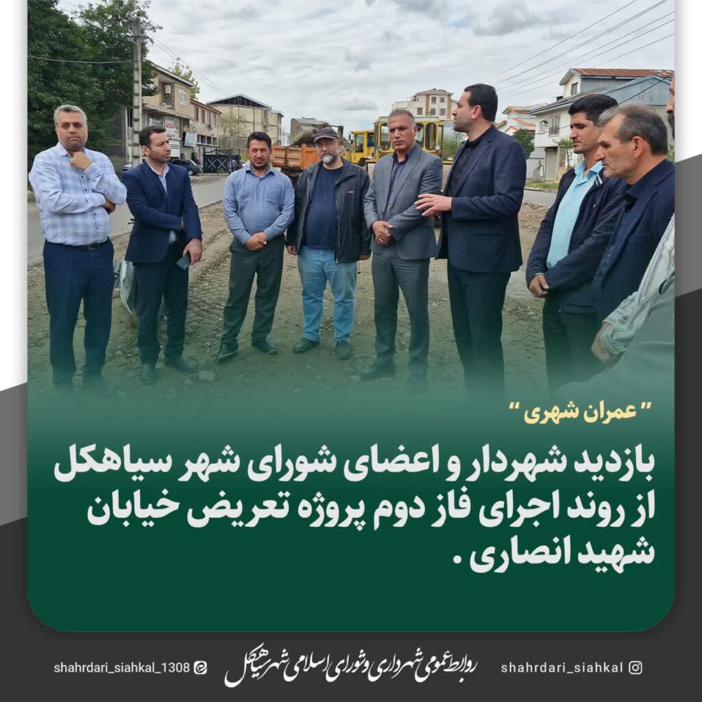 🔸صدای سکوت به گزارش روابط عمومی شهرداری و شورای اسلامی شهر سیاهکل؛ شهردار سیاهکل به همراه اعضای شورای اسلامی شهر از روند اجرای فاز دوم پروژه تعریض خیابان شهید انصاری بازدید کردند.این پروژه شامل تسطیح، تعریض، بلوارکشی، نصب سیستم روشنایی، پیادهروسازی، هدایت آبهای سطحی، ایجاد میدان و فضای سبز و سایر اقدامات عمرانی است که اجرای آن نقش مؤثری در توسعه شهری، بهبود عبور و مرور و افزایش رضایتمندی شهروندان خواهد داشت.