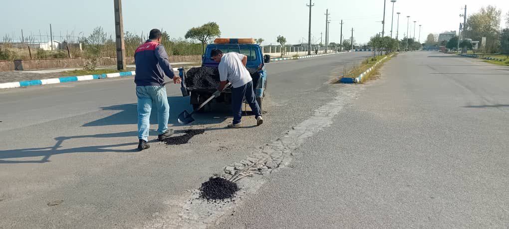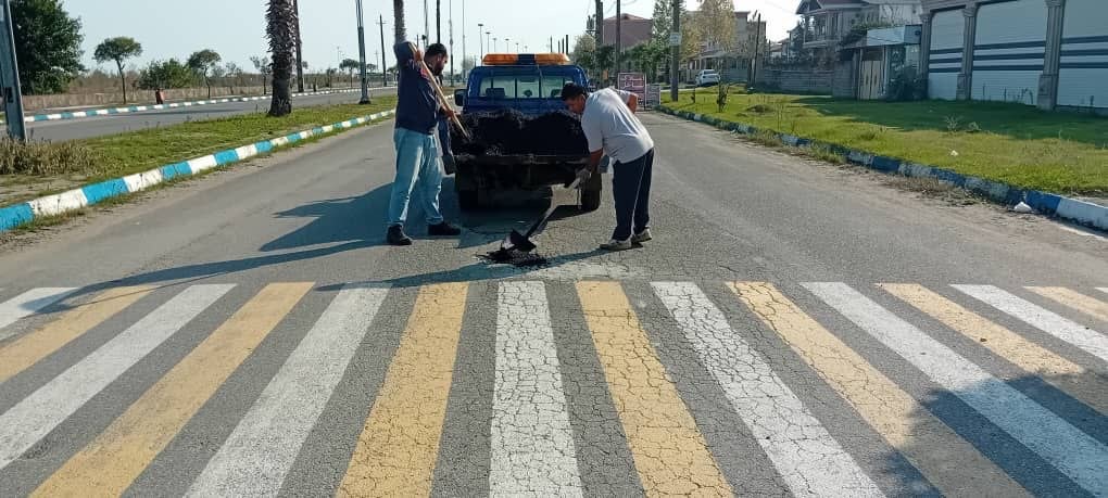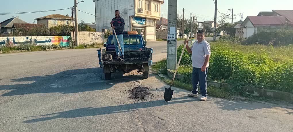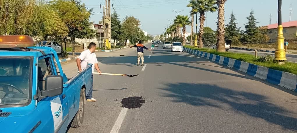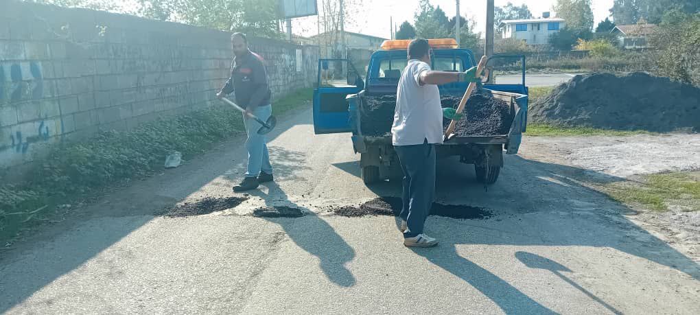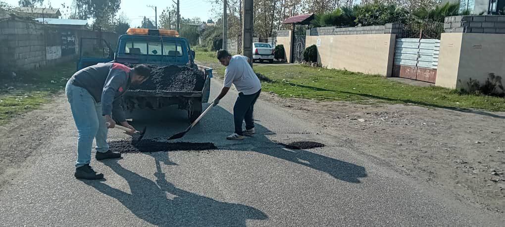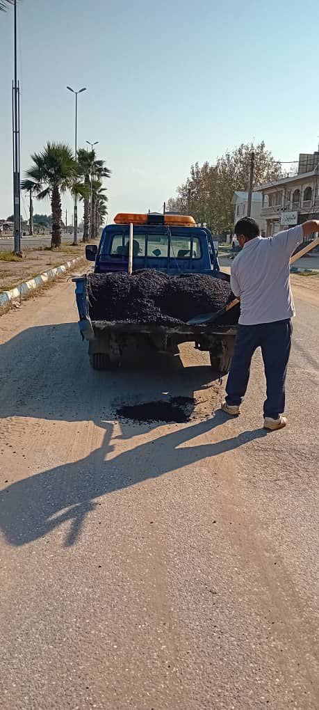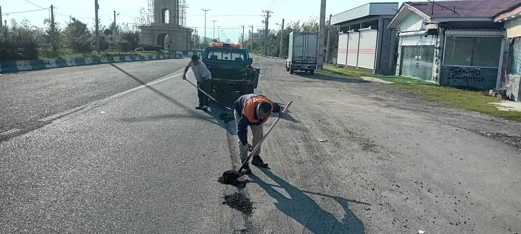 لکه گیری آسفالت سطح شهر چاف و چمخاله ( طرح دریای چمخاله و منطقه تپه) توسط نیروهای زحمتکش واحد عمران