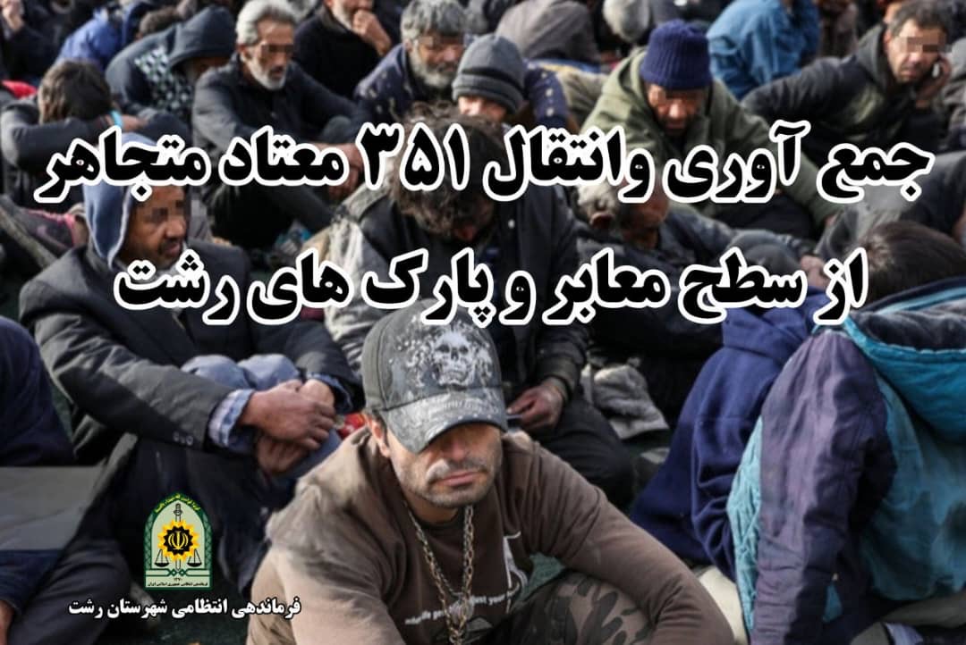 وي افزود: در اجراي طرح جمع آوري معتادان متجاهر به منظور پاكسازي مناطق آلوده و جرمخيز ،باهدف جلب رضايت شهروندان، مأموران پليس رشت اقدام به جمع آوري معتادان متجاهر از سطح پارک ها ،تفرجگاهها ،و ساير نقاط شهر رشت نمودند.