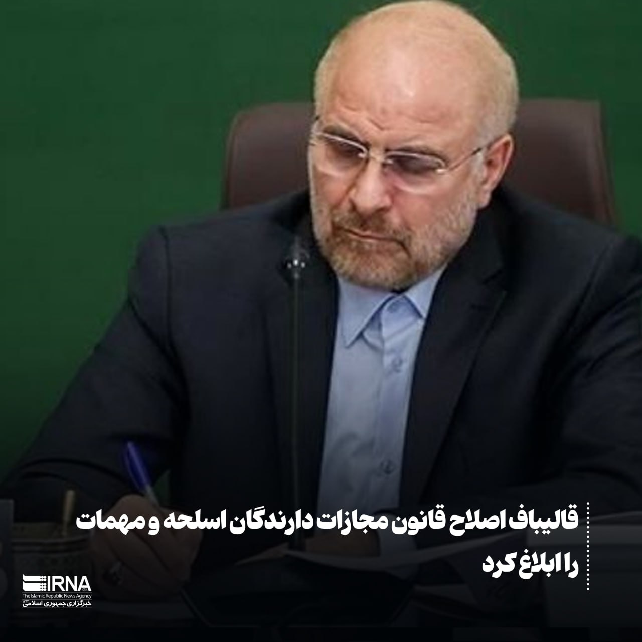 به گزارش صدای سکوت به نقل از ایرنا،محمدباقر قالیباف رئیس مجلس در نامهای به رئیسجمهور، مطابق اصل ۱۲۳ قانون اساسی «قانون اصلاح قانون مجازات اسلحه و مهمات و دارندگان سلاح و مهمات غیر مجاز» را برای اجرا ابلاغ کرد.