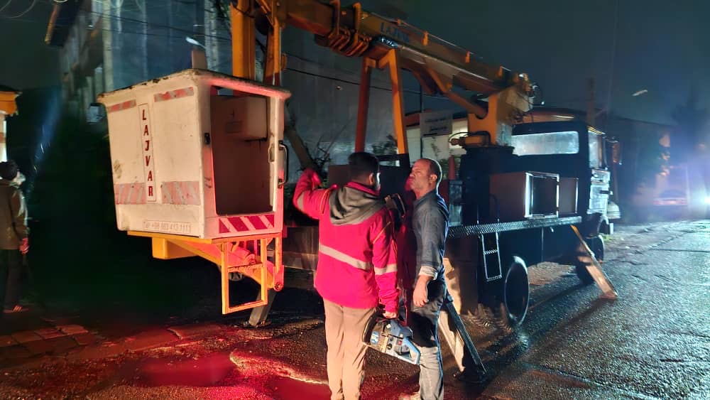 تلاش بی وقفه پرسنل شهرداری و اداره برق جهت رفع بحران